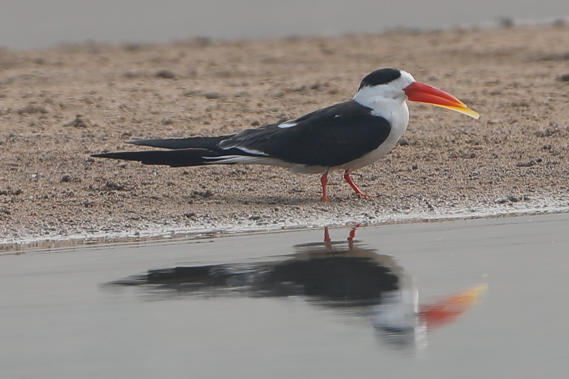 Beskrivelse: Den stærkt truede Indian Skimmer, som blev set efter 3 timers sejlen modstrøms Chambal-floden under årets besøg ved Chambal River - en perlelokalitet for arten (vi så 14 eks., Sunbird havde haft 30+ en uge efter). Lokaliteten byder desuden på gavialer, høgeørne, black-bellied tern og great thick-knee for at nævne nogle få arter. Brun Fiskeugle, der sås her i 2010, er dog blevet fordrevet af Rock Eagle Owl i 2011.