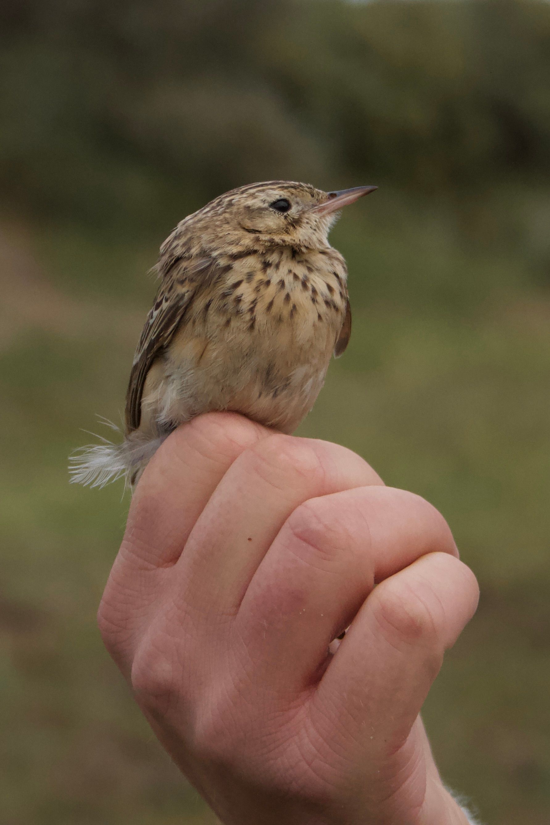 Beskrivelse: Fotograferet efter ringmærkning foretaget af Skagen Fuglestation
