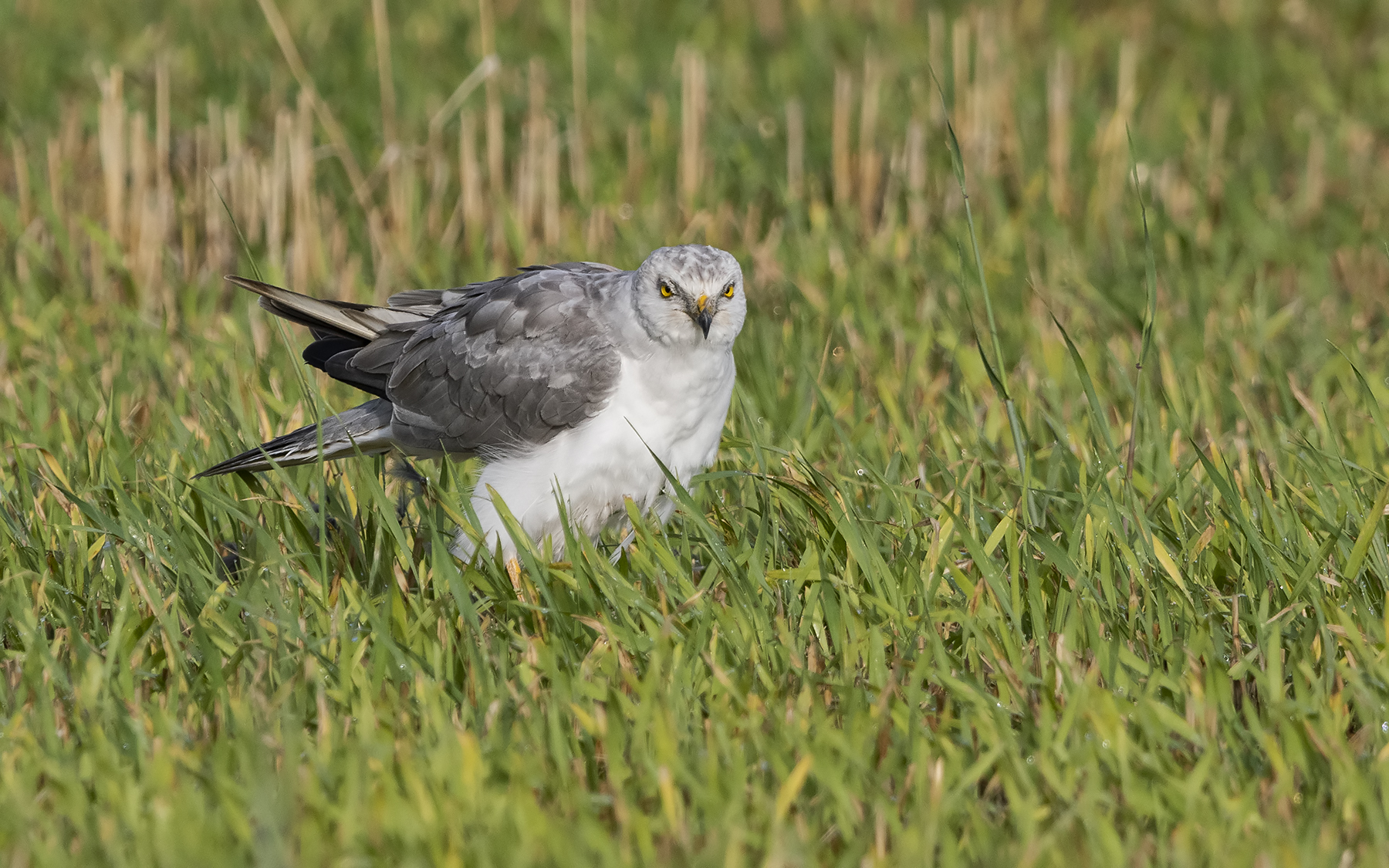 Beskrivelse: Var ude i haven og fodre fuglende da jeg på nabomarken fik øje på denne smukke Steppehøg