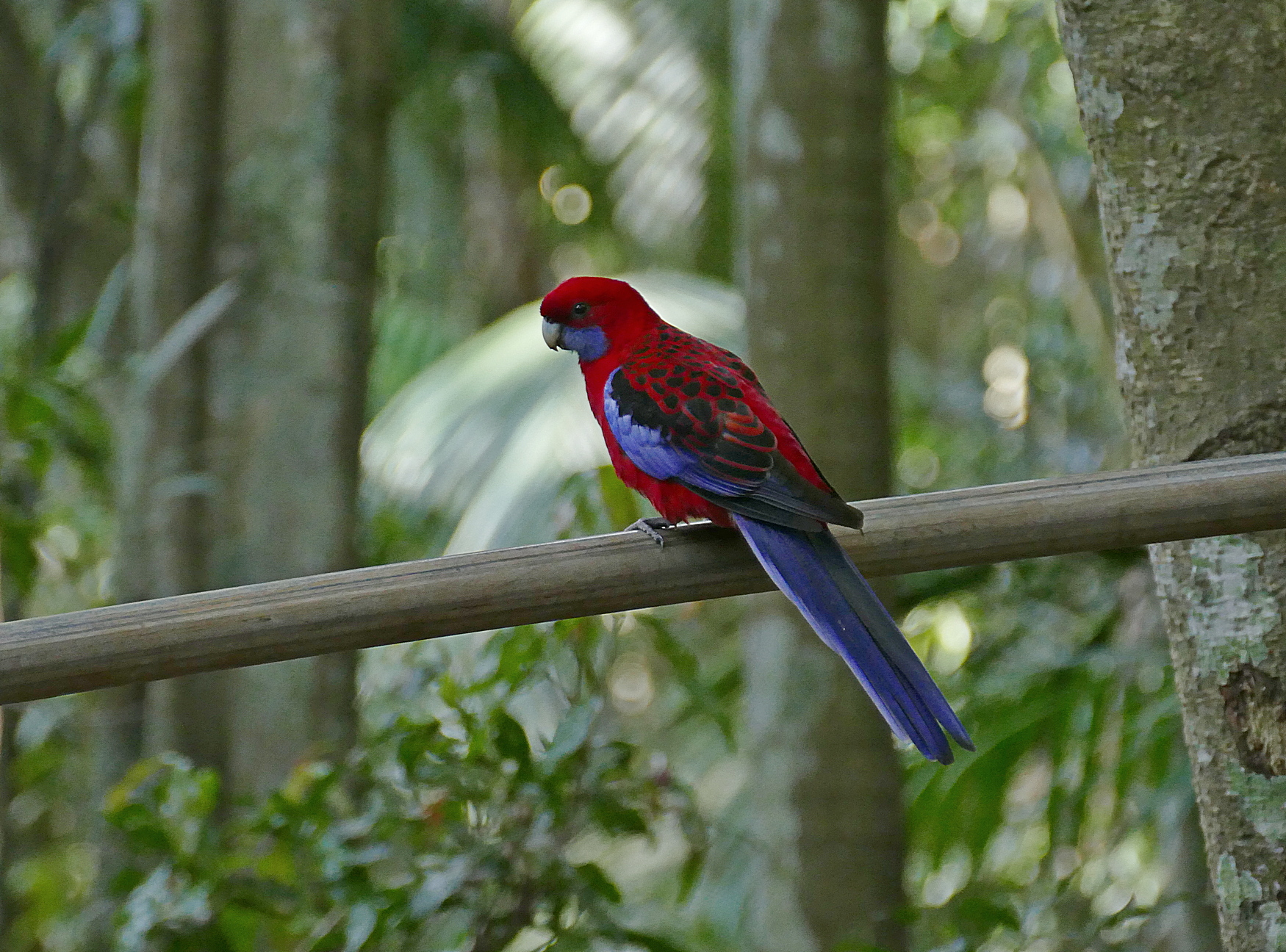 Beskrivelse: Crimson Rosella er så farvestrålende at den nærmest lyser op, selv inde i en dunkel regnskov.