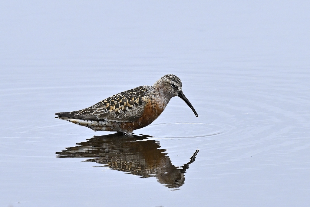 Beskrivelse: Jeg så denne spøjse sag fra tårnet. Den er meget lille. På et tidspunkt lå den sammen med en Toppet Lappedykker og virkede ikke ret meget længere i kroppen end denne.Den er storhovedet med "tykke kinder" Den stejle pande kunne godt pege i retning af Dværggås, hvorimod vingetegningen er meget som Grågås.
