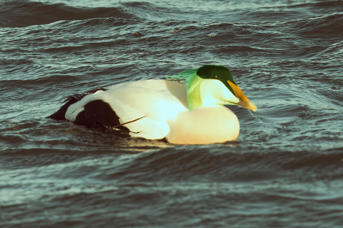 Titel: Ederfugl han, Pragtdragt, med gult næb