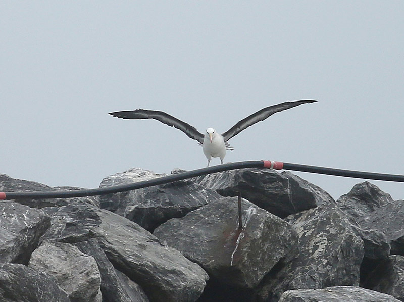 Beskrivelse: 7/5 2015 skete det, mange havde drømt om, siden fuglen sidst blev set samme sted sidste sommer. Den Sortbrynede Albatros dukkede op på fransk visit, opdaget af 2 x Lars ved Hirtshals og lykkeligt set af en større skare, førend den store Norgesfærge kl. 12.30 skræmte den op, hvorefter den forsvandt.