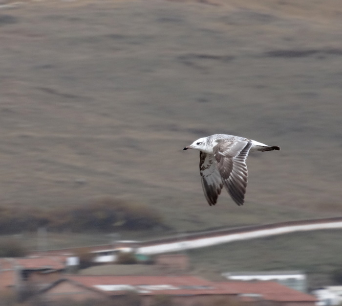 Beskrivelse: En halv snes Store Sorthovede Måger kunne ses ved vådområderne omkring byen.