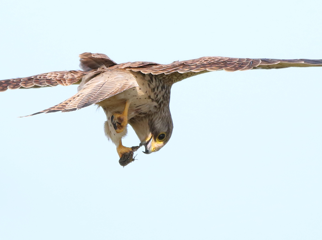 Beskrivelse: Tårnfalken hang over tangen. Slog ned og kom op med et firben, der tydeligvis havde forsøgt at redde sig ved at smide halen. Men desværre for den, valgte tårnfalken ikke halen. Her bliver firbenet flyttet fra klo til næb og ædt mens falken endnu er i luften.
