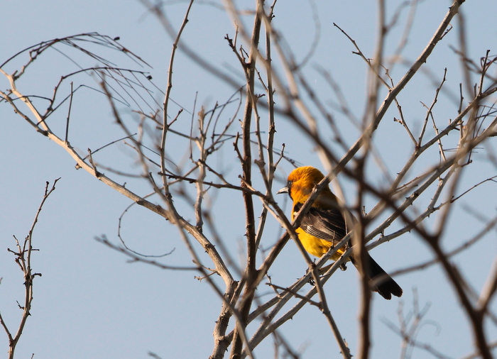 Beskrivelse: Orange oriole is strictly endemic to the Yucatan pen-insula. Here is a female or a young male (not easy to determinate when the bird has this position)