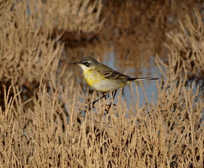Beskrivelse: Det kraftige gule anstrøg på brystet, må næsten indikere, at det er en han, som er ved at fælde til yngledragt.