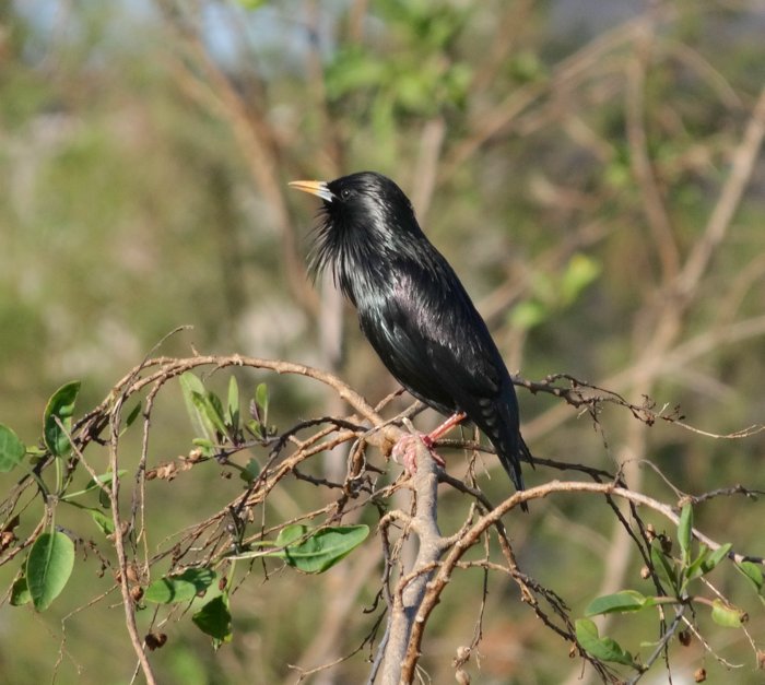 Beskrivelse: Rart at opleve forårsfornemmelser blandt de lokale Ensfarvede Stære ved juletid, men det var også 20°C varmt.