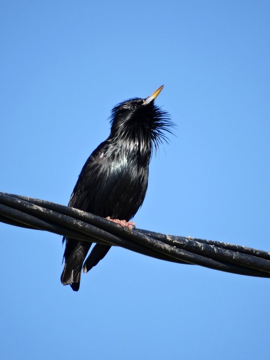 Beskrivelse: De meget længere strubefjer i forhold til vores hjemlige Stær ses fint her.