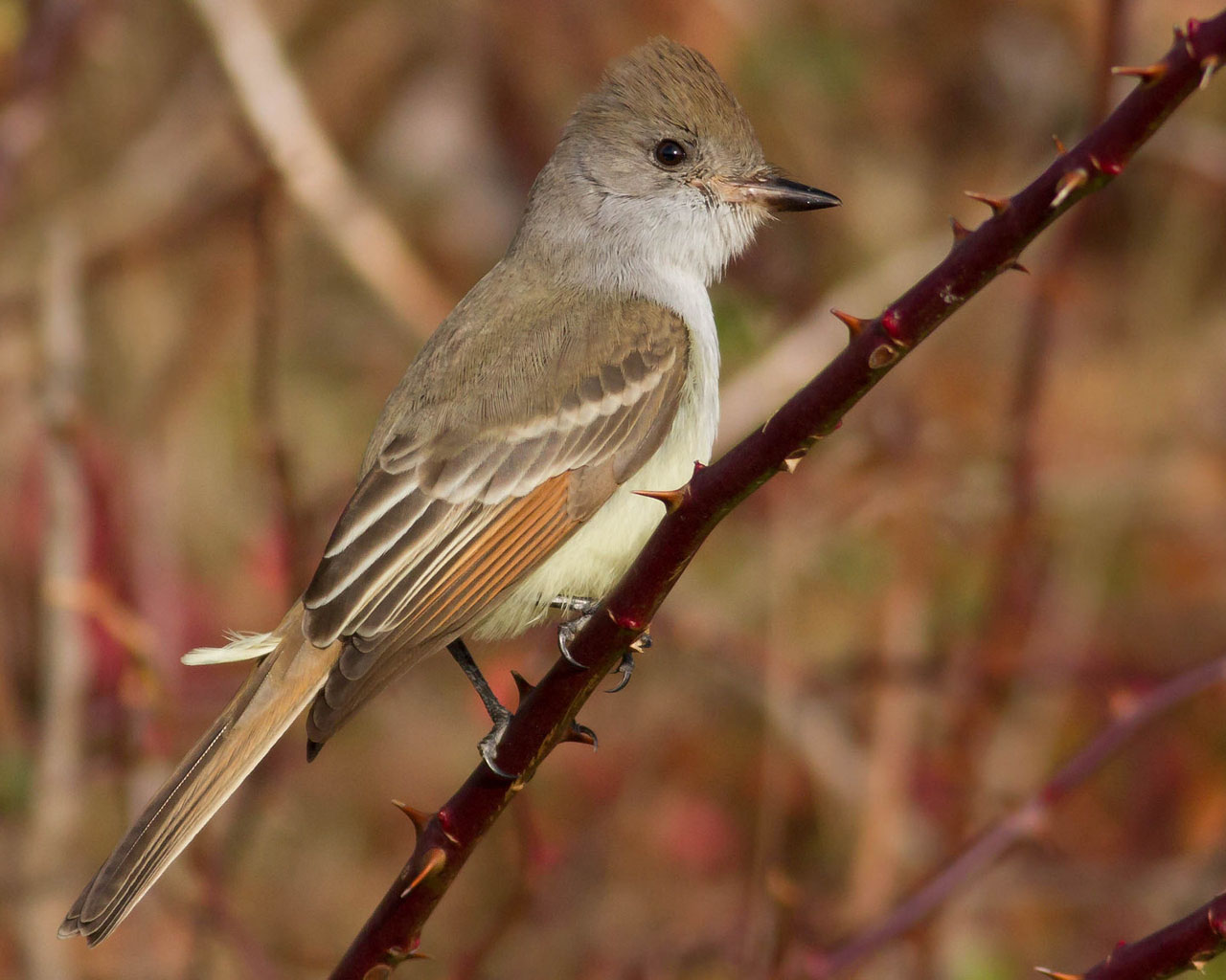 Beskrivelse: Det er ikke så ualmindeligt at se sydvestlige "fluesnappere" i det sene efterår og først på vinteren her i det østlige USA; men på grund af det utroligt varme December vejr overlever de åbenbart en del længere end normalt. Lige nu er der f.eks. mindst 4 Gråstrubet Skovtyraner og 1 Vestlig Kongetyran i Massachusetts.