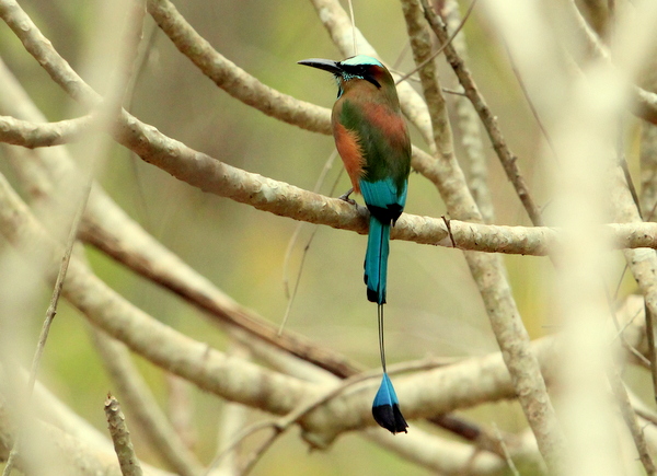 Beskrivelse: Dry woodland bordering the temple site. Here also Blue-crowned Motmot - compared to T.M. a bit more secretive and much lower or on the ground. T.M. is often sitting open at mid-level - down til 2m.