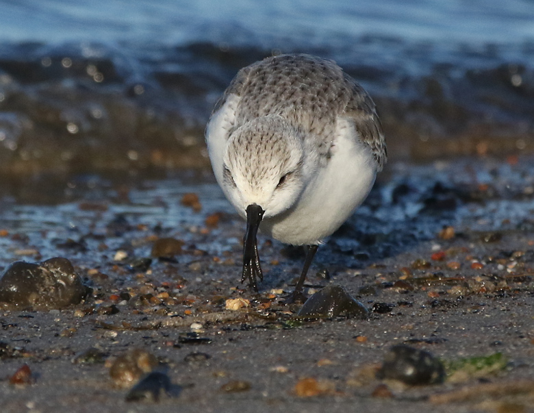 Beskrivelse: Den 3. januar bød på kulde, stærk østenvind og solskin. Smuk dag ved Thorsminde. 20 stk. Sandløber fouragerede på stranden. Indimellem blev de forstyrret af sandfygning.