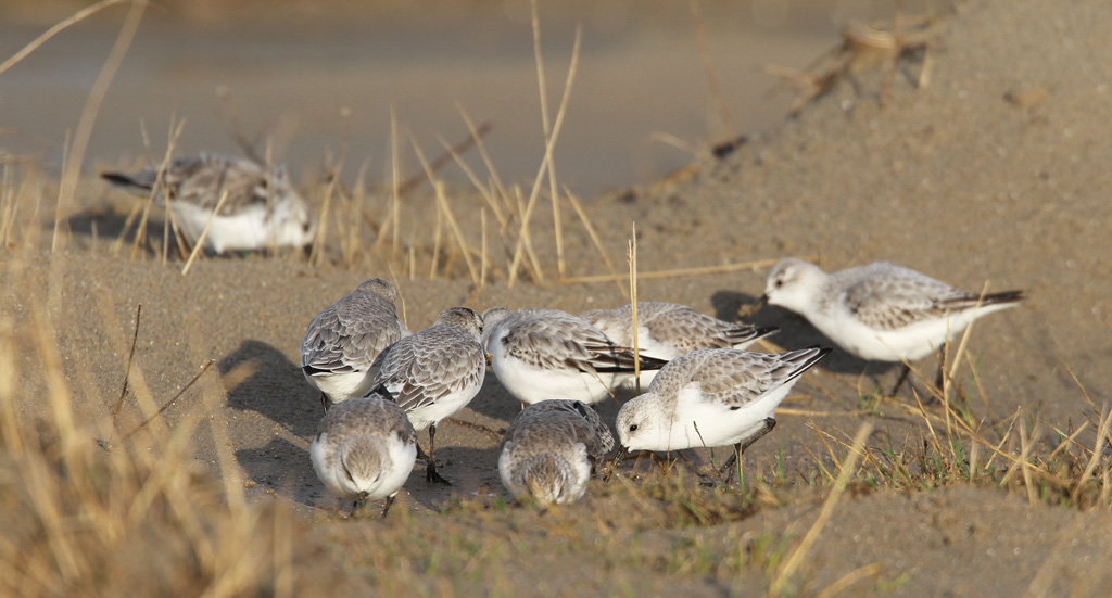 Beskrivelse: Når der blæser en hel Pelikan ude på kysten. er det godt man kan fouragere inde på det nye opfyldnings område på havnen.