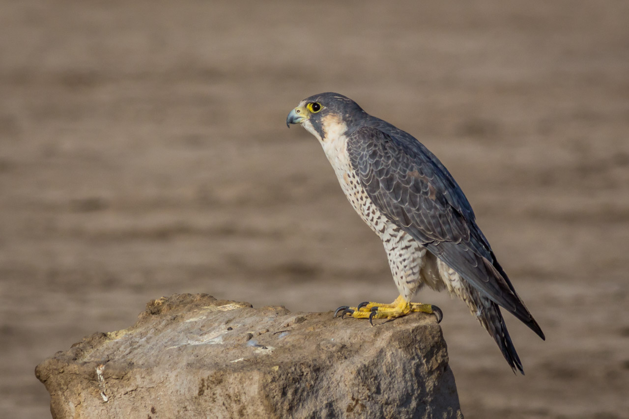 Beskrivelse: En prik i horisonten viste sig her at være en enlig Vandrefalk på en sten - i andre tilfælde en Steppeørn eller Kejserørn.