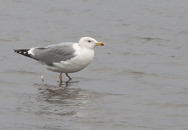 Beskrivelse: Denne fugl viser blandkarakterer mellem Sølvmåge og Kaspisk Måge. Grundlæggende ligner den Kaspisk Måge (hvidt hoved med mørk tegning begrænset til nakkestriber samt mørkt øje), men hovedformen er underlig langstrakt, næbbet har for bred spids (og nok for meget rødt på gonys) og fuglen virker lidt for "fedladen" for en normal Kaspisk. De svagt gultonede ben ses tit hos Kaspisk, men også hos mange Sølvmåger. Fuglen kan stamme fra de kolonier i Polen, hvor 50% af fuglene er i blandpar de to arter imellem. Disse kolonier er nok også ansvarlige for en del mindre klassiske ungfugle af Kaspisk Måge, men dét er et felt for de virkelige nørder.