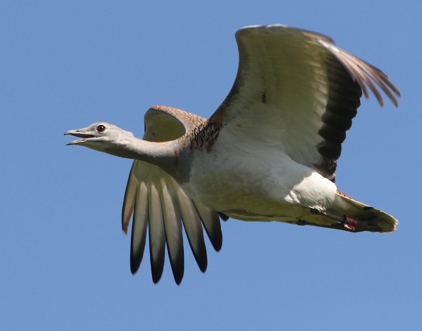 Beskrivelse: Så lykkedes det dette forår at få et nærbillede af en overflyvende stortrappe FEMALE.
