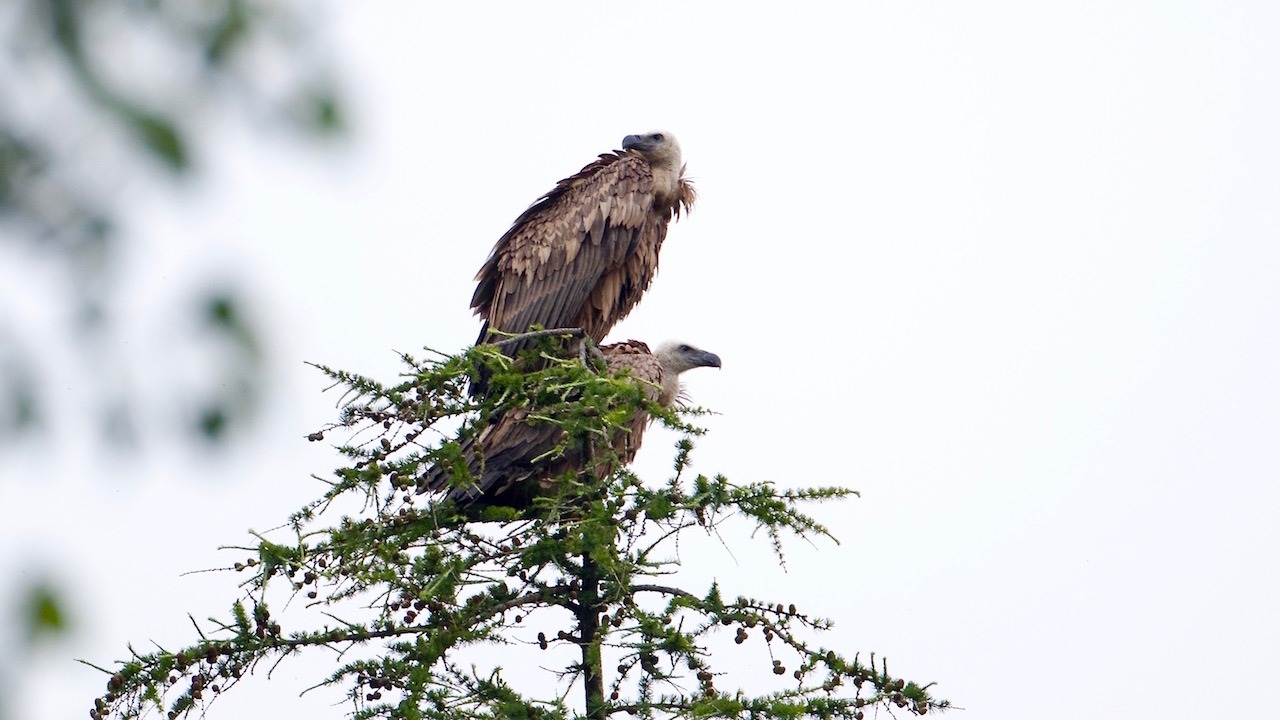 Beskrivelse: Disse to havde tilbragt natten i en høj gran.