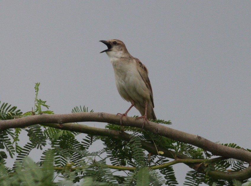 Beskrivelse: Bristled Grassbird er en sjælden ynglefugl i det nordlige Indien, hvor den kun ses i monsuntiden (regntiden) i sommermånederne. Her laver den en karakteristisk sangflugt over våde græsområder, med et monotont, gentaget tjirp-spurvekald. Vi fandt et område med 2-3 syngende fugle nær Ajmer, men så den også i vådområdet Surajpur nær Delhi.