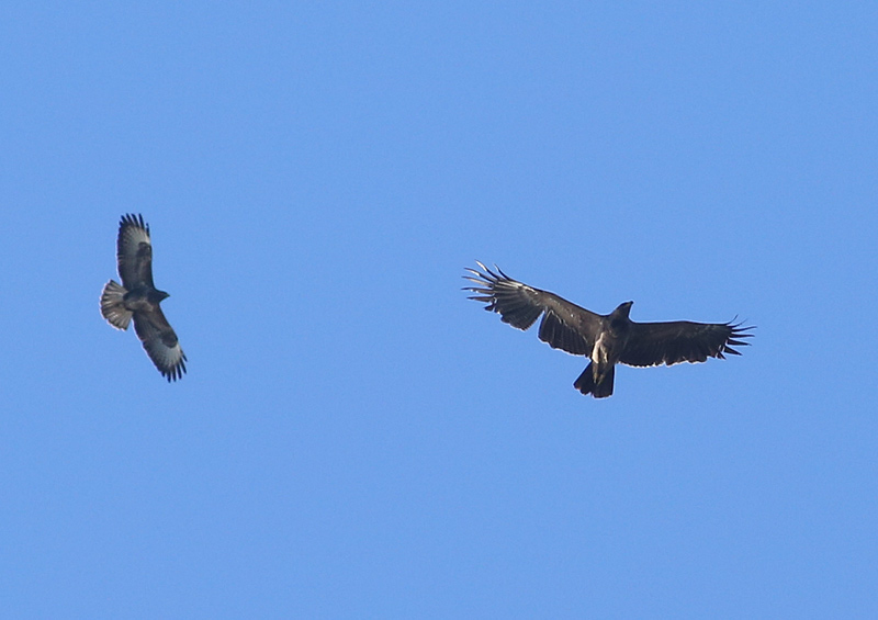Beskrivelse: 2K Lille Skrigeørn, 4.10 2016 udtrækkende ved Falsterbo. Fuglen bestemtes til 2K på baggrund af overvejende juvenile svingfjer, bortset fra 2-3 inderste håndsvingfjer, der har nye. Fuglen, der trak ud 1030, blev trods udmelding ikke set på Stevns. Den er identisk med en fugl, der få dage før huserede på Öland.