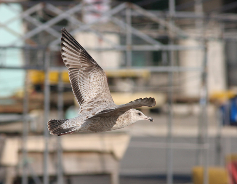 Beskrivelse: Her er lidt til juleferien, der kan bruges til at se på måger, hvilket jo på denne tid tidligere har givet gode resultatet. Der er efterhånden 8 WP-fund af Skifermåge fra Østasien. På denne fugl ses de grå rygfjer med mrke pletter, ikke tværbånd som hos Sølvmåge, det mere udvandede mnster på dækfjerene samt den ret lyse hånd, hvor yderfanerne og spidserne på de 5 yderste håndsvingfjer står ud mod retsne af de lyse håndsvingfjer. Læg også mærke til den ret ensartet lysebrune hale.