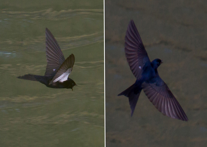 Usually the birds just appear black in the field and the gloss of each race is very hard to judge in the field (like on the left picture)