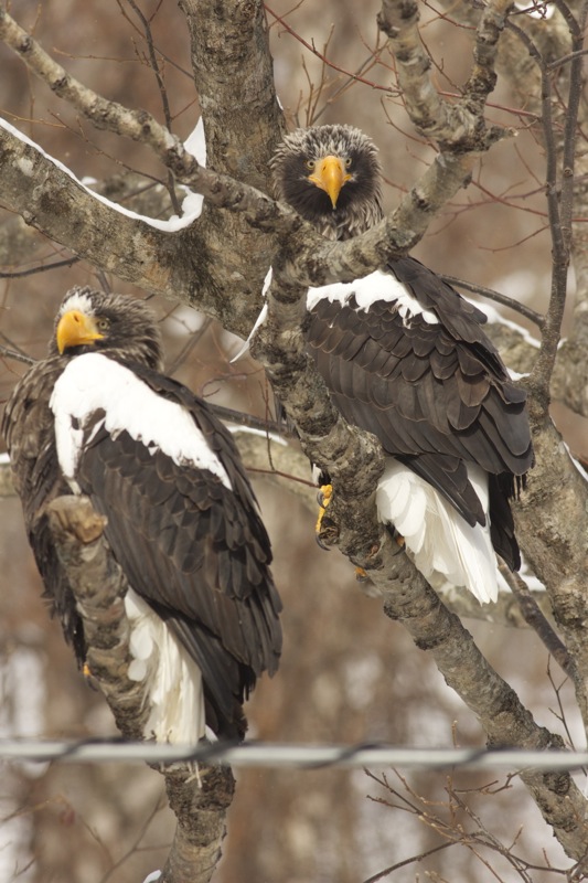 Beskrivelse: De sad overalt i træerne ved kystvejen i og udenfor Rausu by. I alt har der nok været 2-300 fugle i Rausu området.