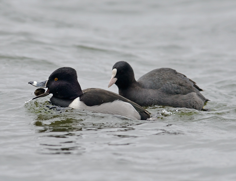 Beskrivelse: 17/22 lå Halsbåndstroldanden ganske nær bådebroen i en isvåge, men næste dag var alt tøet væk. Tak til Alex R. for at genfinde fuglen ovre på modsatte side af søen blandt fourageringsflokken dér.