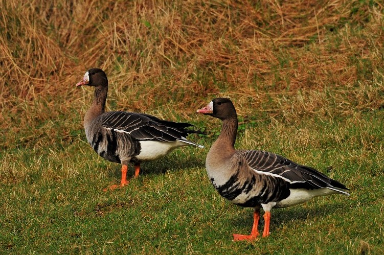 Beskrivelse: Bemærk hunnens korte næb og lille runde hoved.