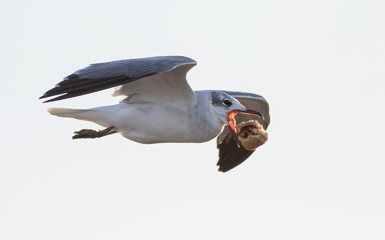 Beskrivelse: Fuglen havde fået fat i en ordentlig stor "snegl" som den formåede at flyve med og vende i luften - uden at tabe den.