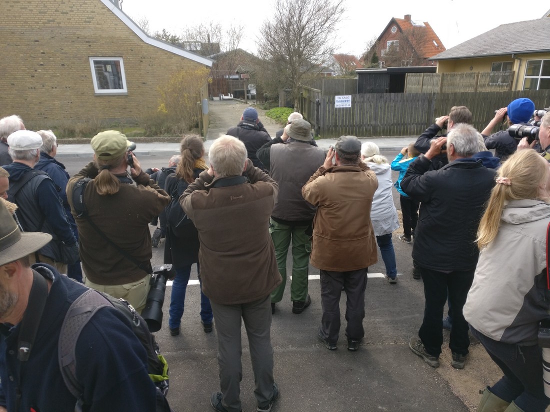 Beskrivelse: Klokken 16.14.28. Den sidder derinde et sted. Både på fliserne og i træerne.
