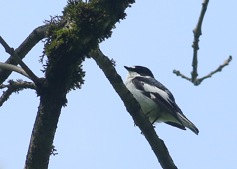 Beskrivelse: typisk han med hvide spidser af små dækfjer, vingetegning i øvrigt som en mellemting mellem Broget og Hvidhalset Fluesnapper; her er det vigtigt, at halesiderne er hvide og runder spidsen på de yderste halefjer. Sangen er underligt presset i forhold til Broget Fluesnappers, som det i endnu højere grad er tilfældet hos Hvidhalset Fluesnapper.