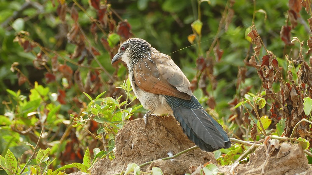 Titel: Hvidbrynet Sporegøg, White-browed Coucal (Centropus superciliosus)