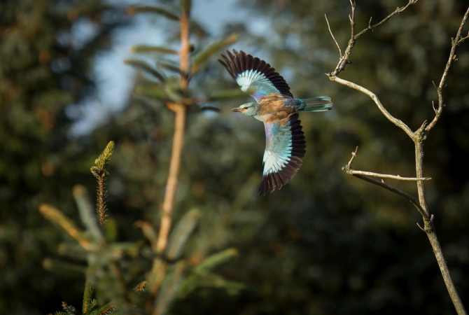 Beskrivelse: Ellekragen fouragerede flittigt i hurtige dyk fra skiftende udkigsposter. Den spottede let biller på 10-15 meters afstand og en enkelt lille tudse blev det også til. Føden indtog den når den igen var tilbage på sin gren.