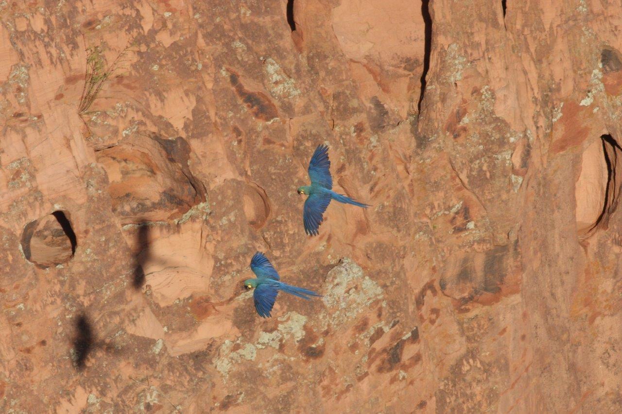 Fuglene flyver lange strækninger hver dag ud i det åbne land, for at finde nødderne af Licura-palmen, som er dens hovedføde.