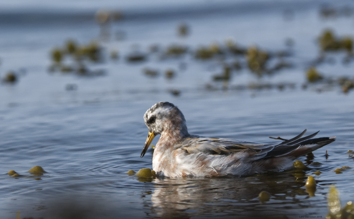 Beskrivelse: Fouragerer helt inde ved strandkanten mellem sten og tang.
