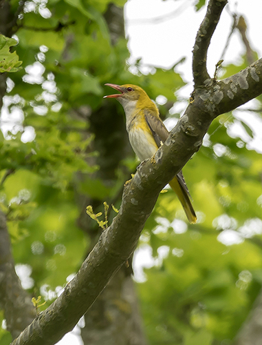 Beskrivelse: Pirol sad syngende i en lille rum tid