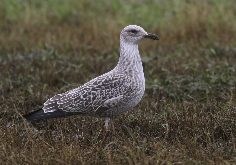 Beskrivelse: Et godt tip til at finde unge Sildemåger herhjemme i september er, at de stort set er i ren juvenil dragt (med skællet overside, da de enkelte fjer er mørke med regelmæssige lyse rande) på et tidspunkt, hvor hjemlige Sølvmåger samt Kaspiske og Middelhavssølvmåger har udskiftet (en del af) ryggen med grå fjer med mørke tværbånd eller pletter.