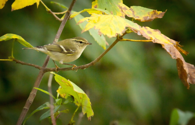 Hvidbrynet Løvsanger (Phylloscopus inornatus) Yellow-browed Warbler -