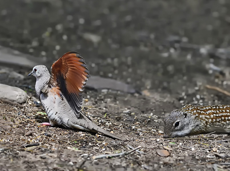 På den velbesøgte foderplads så vi den flashe, når egerne (Mexican Ground Squirrels) kom lidt for tæt på.