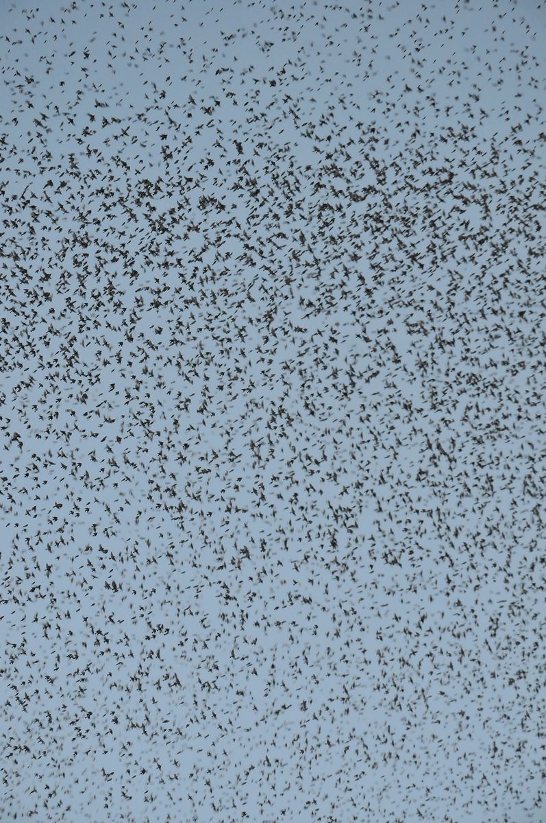 Beskrivelse: Lille udsnit af denne giga flok kvækerfinker der gik til overnatning sammen ved hovedvej a13 ved Hjøllund,fantastisk oplevelse! og en larm uden lige fra 200000+ finker.