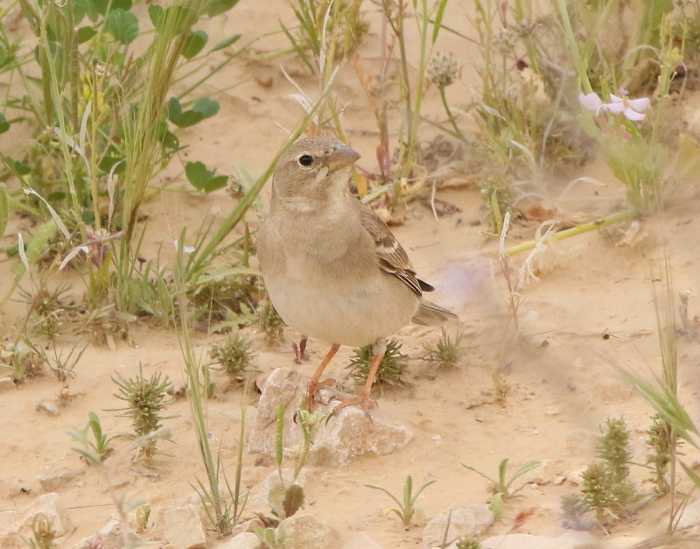 Beskrivelse: Klaus Malling Olsen guidede os til dette sted med lys stenspurv. Vi så en pæn stor flok, som ivrigt fouragerede. Flokken delte sig, og en mindre gruppe kom på fotoafstand.