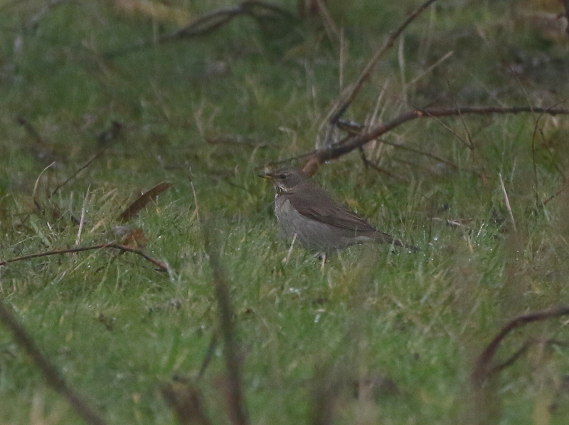 Beskrivelse: Regnvejrsbilleder af ivrigt fouragerende Sortstrubet Drossel. Min første. Ved desværre ikke, hvem der opdagede fuglen først.
