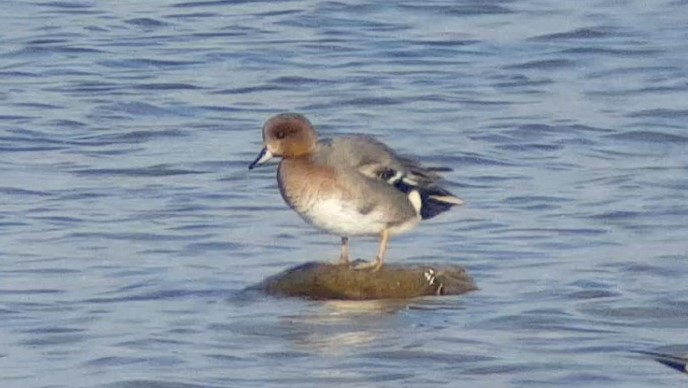 Beskrivelse: Hybrider mellem knarand og pibeand lader til, at være sjældne i naturen. I dette tilfælde en adult han, som holdt sig til knarænder.