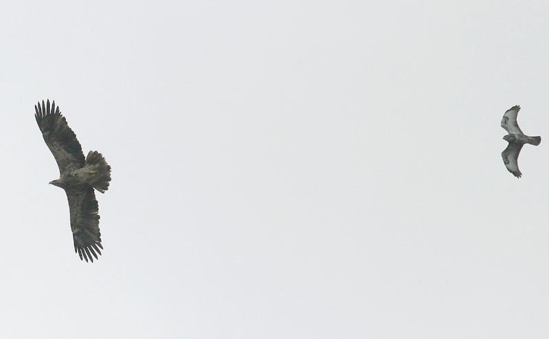 Beskrivelse: Immature Kejserørn over Østmøen. Efter fuglen havde overnattet midt på øen fløj den østpå, kredsede en tid over Mandemarke Bakker førend den fra 0958 indledte sit først langsomme, senere hurtigere træk mod nordvest for at forsvinde fra Nyord mod Jungshoved 11.15.