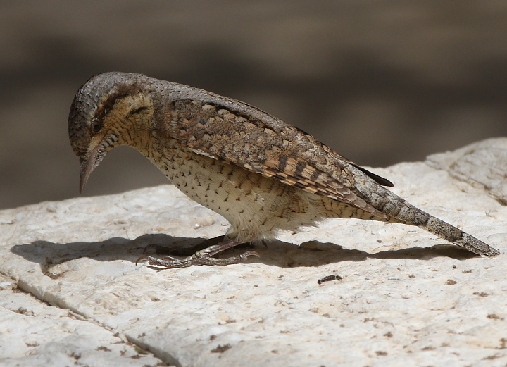 Beskrivelse: Vendehalsen fandt myrer i revner og sprækker i murværket. Park i Eilat.