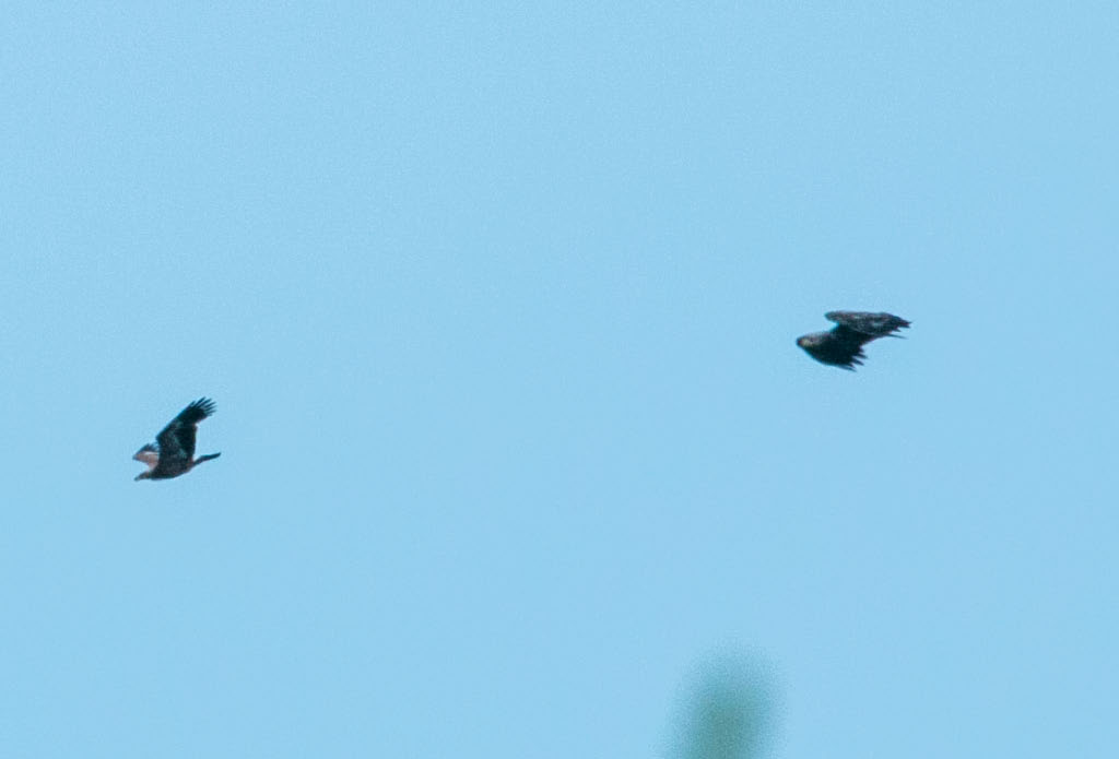 Beskrivelse: Ikke et af de skønbilleder der lægges på netfugl i dette forår/sommer af steppeørn, men ren dokumentation af en meget intens oplevelse. Stod og rensede hus inden maling, hørte et skrig. Så to ørne i infight, slap alt, løb efter kamera og skød 5 billeder, ingen nydelse i kikkert og på under 1 minut var det hele overstået, men dybt printet på nethinden.