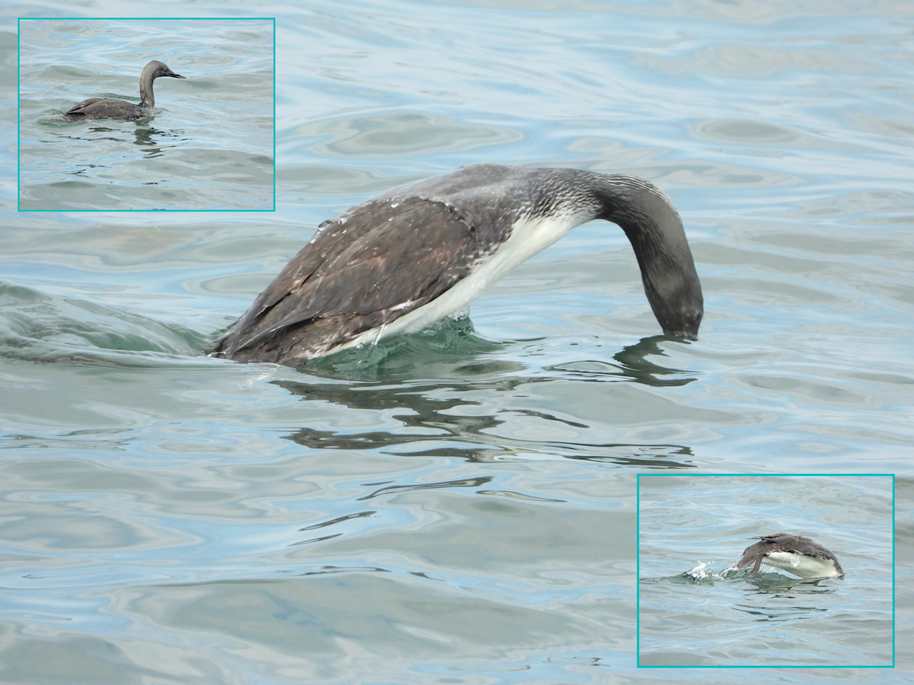Beskrivelse: Seriefoto af dykkende rødstrubet lom