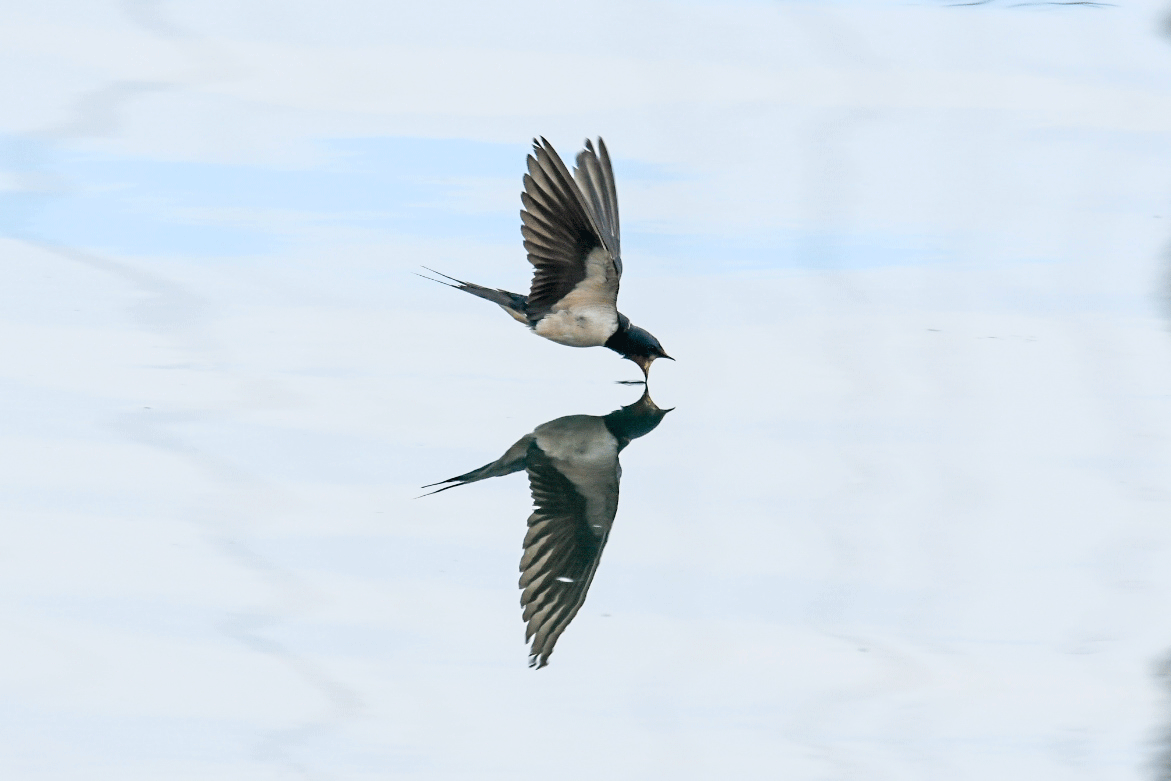 Titel: Landsvale der lige skal ned og se hvordan den ser ud i vandets overflade.