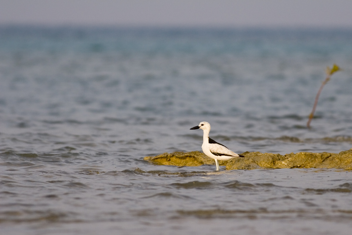 Beskrivelse: At least 130 Crab-plovers were seen in Hamata Mangroves on this date. Perhaps on the largest counts ever from Egypt, but not the largest, e.g. were 144 birds seen in Hamata Mangroves in September 2003.