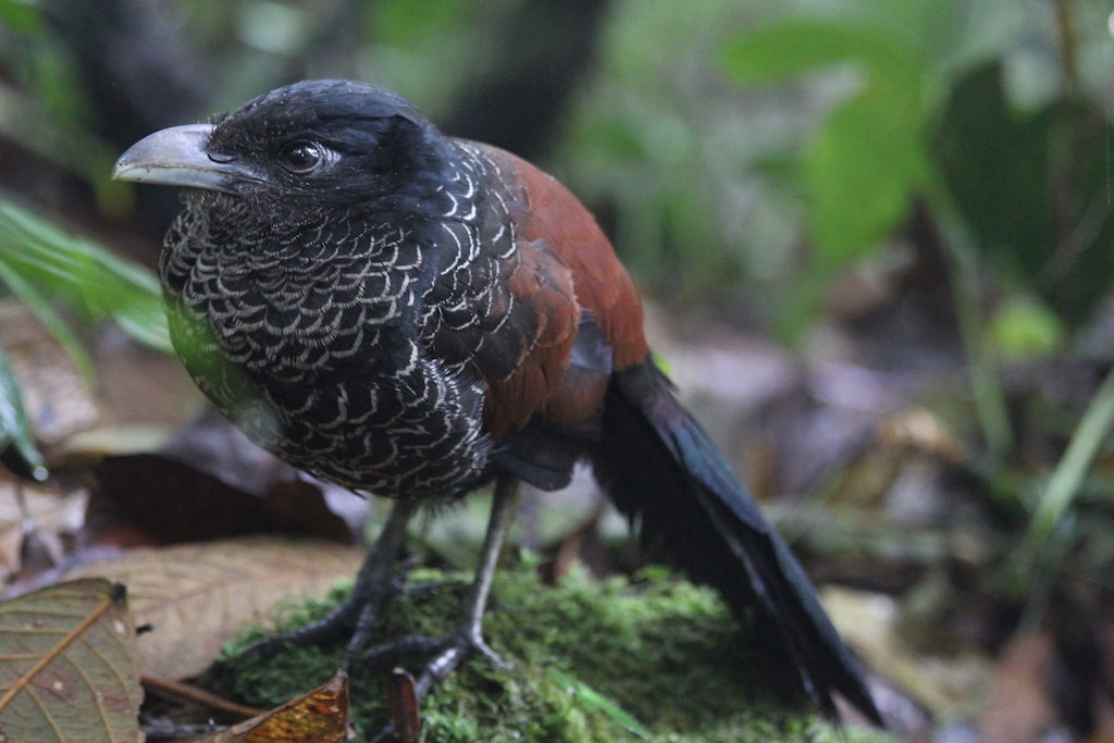 Beskrivelse: Båndet Jordgøg (Banded ground cuckoo)Neomorphus radiolosus eBird: Impressively large, roadrunner-like bird of wet foothill rainforest. It's one of the rarest and most sought-after birds of northwestern Ecuador and western Colombia.